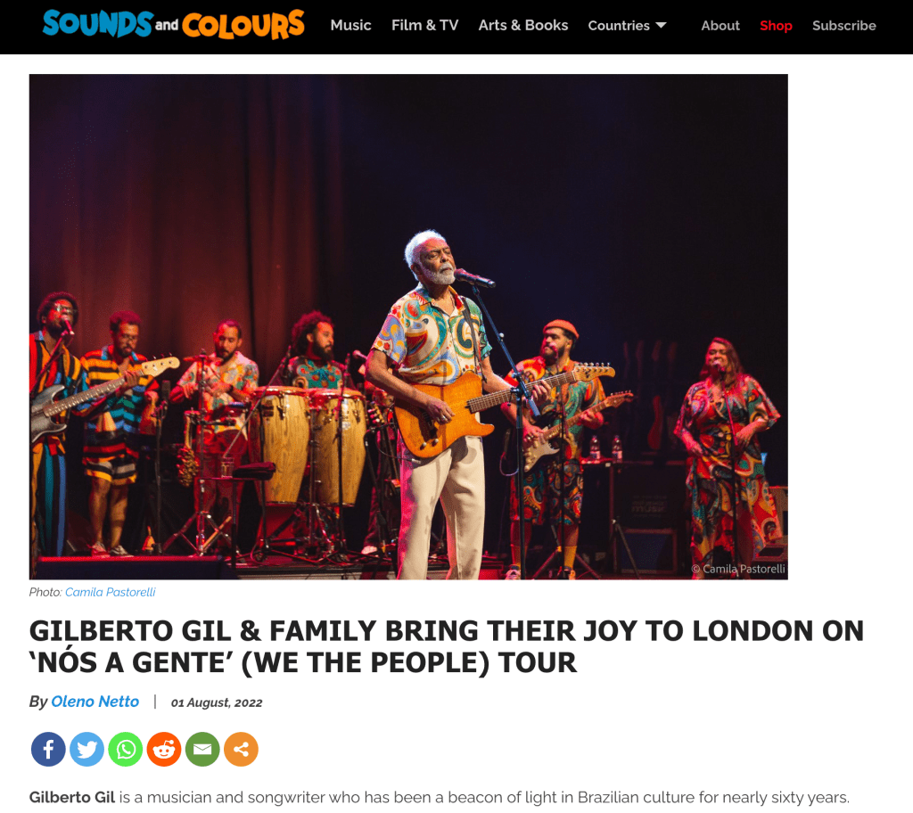 Gilberto Gil and family performing at the Barbican Centre, in London.